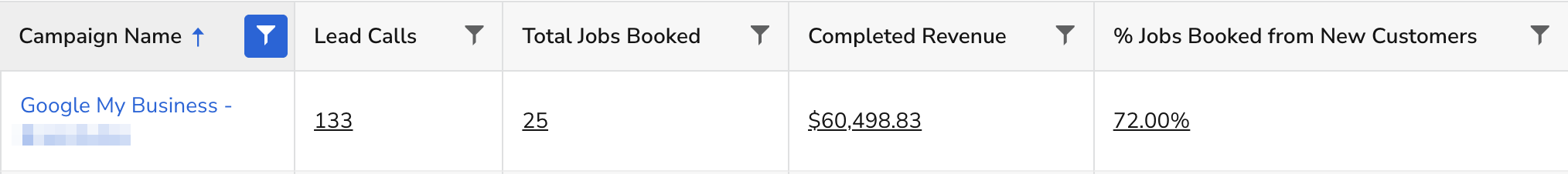 After the optimization, we saw 133 lead calls, with 25 jobs booked, and $61,020.69 in completed revenue, where 72% of jobs booked were from new customers.