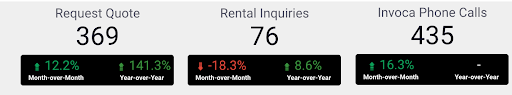 When examining conversions during this period, Request quotes saw a 12.15% increase, rental inquiries increased by 1, and phone calls increased by 16.31%.